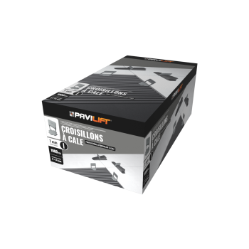 La cale PAVILIFT® a été renforcée dans sa structure pour éviter au mieux toutes déformations. Ses extrémités sont biseautées, pour faciliter son insertion dans le croisillon et le sabot sur la partie arrière évite le frottement de la pince au serrage sur le carreau.